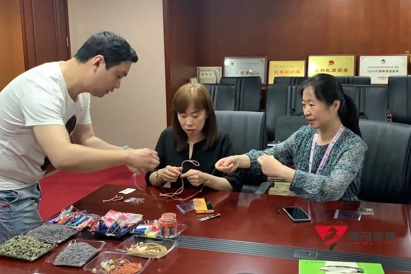 制作前,天辰娱乐的手工老师首先介绍了端午的习俗以及端午节制作香囊与五彩绳的来历,让大家在活动前了解端午的民俗文化,手工老师将精心准备的有着美好寓意的五色彩绳、色彩绚丽的香包袋以及清香的艾草薰衣草,送到职员手中,携手制作香包和五彩绳。